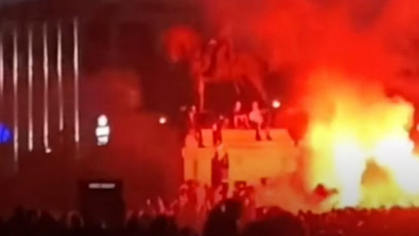 Μάλιστα, όπως τονίζουν τα ρεπορτάζ, το βράδυ της Παρασκευής οπαδοί της Λίβερπουλ πέταξαν καπνογόνα ακόμα και στο κτήριο του Liver, ένα από τα γνωστά κτήρια της πόλης, το οποίο μάλιστα σε ένα σημείο του έπιασε και φωτιά, όπως φαίνεται στο βίντεο.