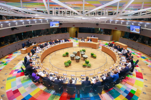 Οι αρχηγοί των ευρωπαϊκών κρατών και κυβερνήσεων φορούν μάσκες κατά την διάρκεια των εργασιών της ευρωπαϊκής συνόδου κορυφής.