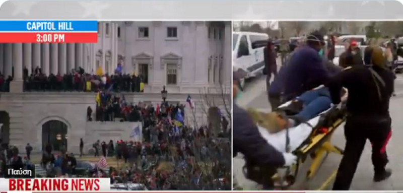 Δείτε τα βίντεο που κυκλοφορούν από τη στιγμή του τραυματισμού και τη μεταφορά της με φορείο έξω από το Καπιτώλιο: