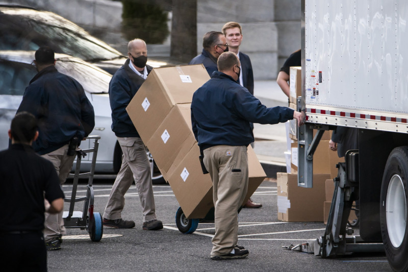 Οι παλέτες με τα άδεια κουτιά έφτασαν σήμερα στον Λευκό Οίκο ενώ ο νέος Πρόεδρος Μπάιντεν ετοιμάζεται να αναλάβει σε μία βδομάδα και συγκεκριμένα στις 20 Ιανουαρίου. Τα περισσότερα από τα γραφεία