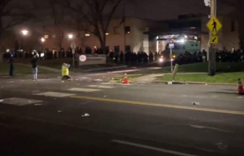 Αμέσως ξέσπασαν διαδηλώσεις, και περίπου 100 άνθρωποι, αρκετοί εμφανώς εξοργισμένοι, ο ένας εκ των οποίων κράταγε πλακάτ που ανέγραφε το σύνθημα «Δικαιοσύνη για τον Τζορτζ Φλόιντ», ήρθαν αντιμέτωποι με αστυνομικούς εφοδιασμένους με εξαρτύσεις αντιμετώπισης ταραχών.