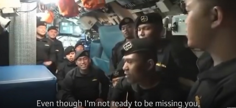 Όπως φαίνεται στο βίντεο το πλήρωμα τραγουδά χαρούμενο, ενώ ανάμεσα στα μέλη του υποβρυχίου που φαίνονται να τραγουδούν είναι και ο κυβερνήτης, Heri Oktavian. Όλοι είναι συγκεντρωμένοι γύρω από έναν άνδρα που παίζει κιθάρα.