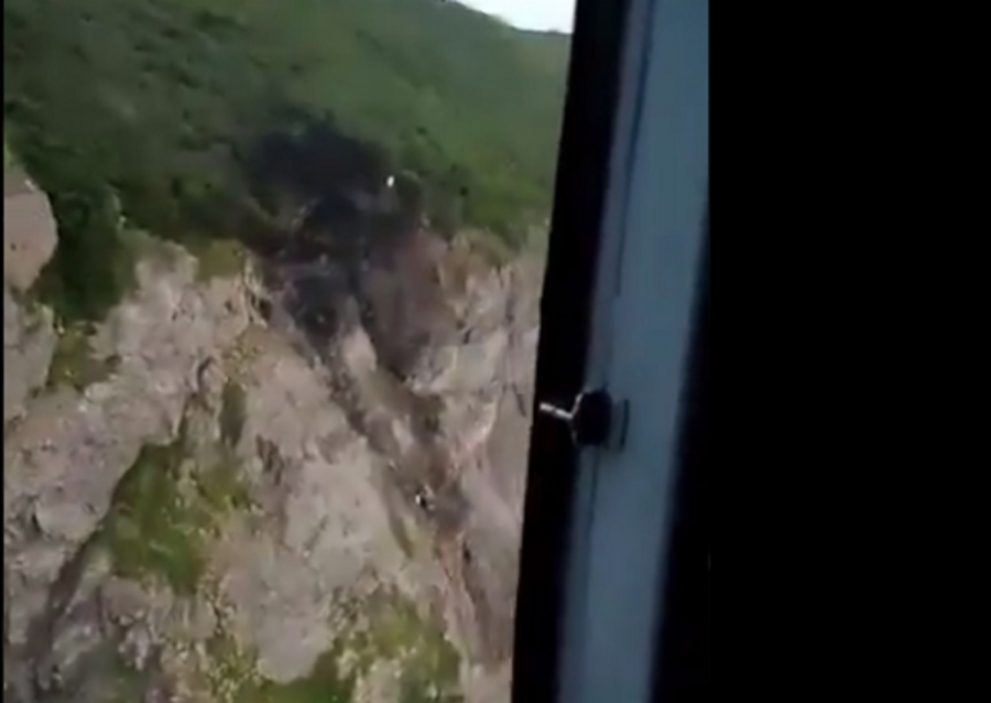 Το βίντεο που τραβήχτηκε μέσα από ένα ελικόπτερο, το οποίο έσπευσε στο σημείο μετά τον συναγερμό που σήμανε, δείχνει δέντρα και βράχους στο σημείο συντριβής να έχουν γίνει κατάμαυρα ως αποτέλεσμα του δυστυχήματος.