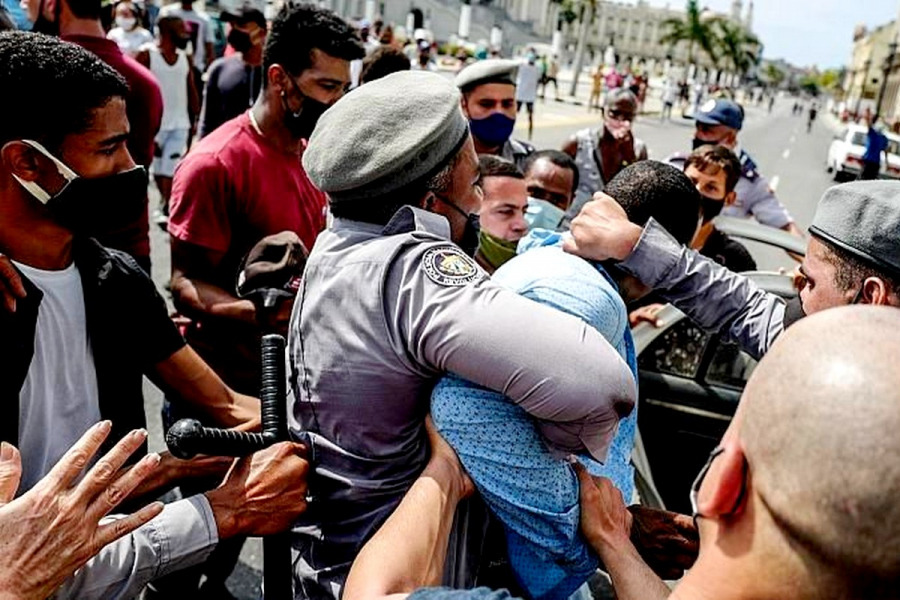 Χιλιάδες Κουβανοί βγήκαν στους δρόμους για να διαδηλώσουν για την κατάρρευση της οικονομίας, την έλλειψη τροφίμων και φαρμάκων, τις αυξήσεις τιμών και τον χειρισμό της πανδημίας Covid-19 από την κυβέρνηση. Τέτοιες μη εξουσιοδοτημένες δημόσιες συγκεντρώσεις είναι παράνομες στην Κούβα. Ο πρόεδρος Μιγκέλ Ντίας-Κανέλ χαρακτήρισε τους διαδηλωτές «αντεπαναστάτες».