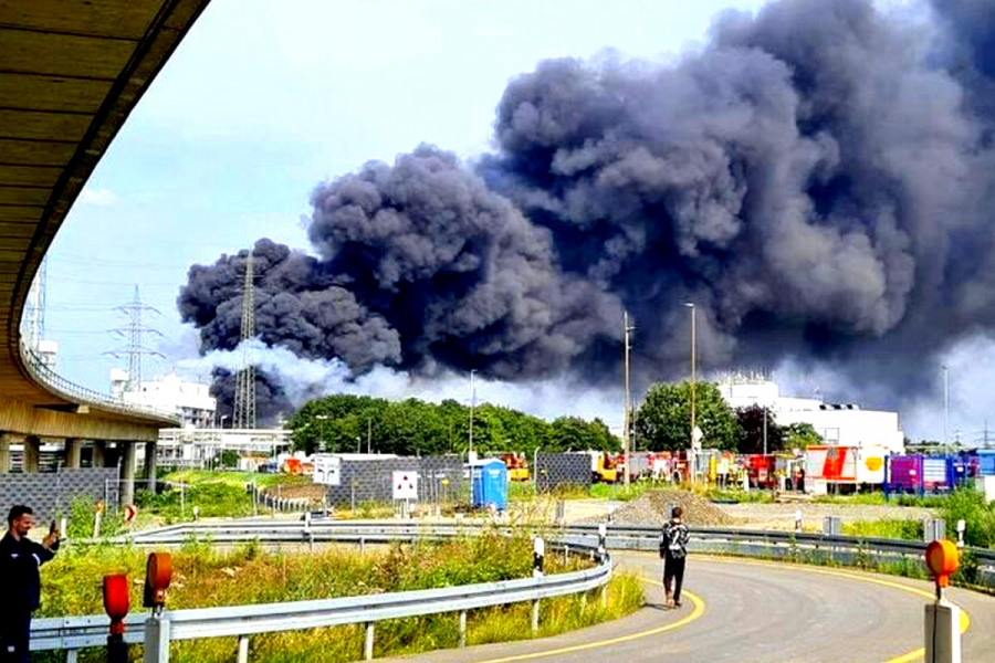 Πυκνός μαύρος καπνός αναδύεται ακόμη από το σημείο της έκρηξης, όπου, όπως σημειώνει η «Bild», γίνεται η καύση απορριμμάτων, μεταξύ των οποίων και επικίνδυνων τοξικών αποβλήτων. Το νέφος που έχει δημιουργηθεί κατευθύνεται, σύμφωνα με το κέντρο ελέγχου της περιφέρειας Ράινις-Μπέργκις, προς τις περιοχές Μπουρσάιντ και Βερμελσκίρχεν, ενώ η οσμή είναι αισθητή έως το Ζόλινγκεν και το Βούπερταλ.