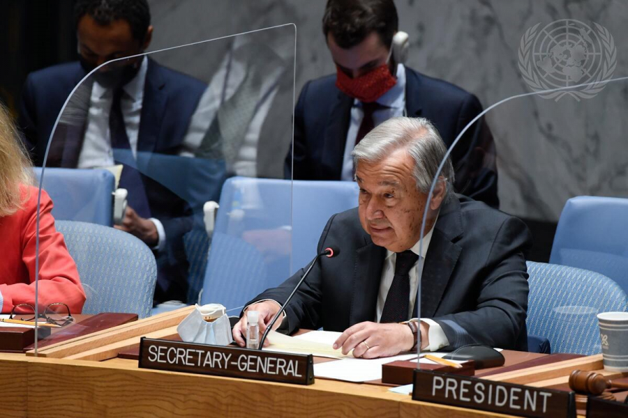 Στη σύντομη εισαγωγική τοποθέτησή του, ο Γκουτέρες επέμεινε στην «ανάγκη να διασφαλιστεί η προστασία των δικαιωμάτων των γυναικών και των κοριτσιών στο Αφγανιστάν -- περιλαμβανομένης της πρόσβασης στην εκπαίδευση και σε άλλες βασικές υπηρεσίες».