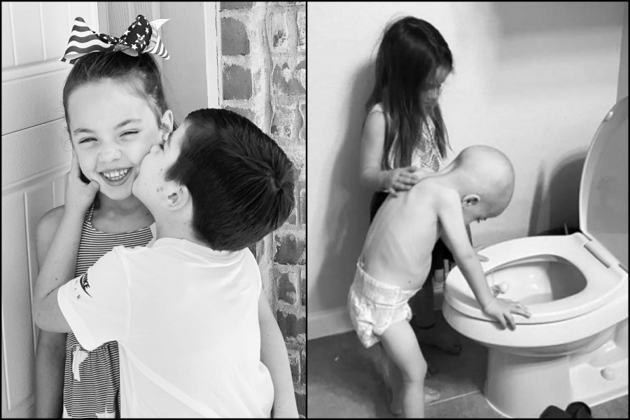Στην εικόνα ο 4χρονος γιος της, Μπέκετ, καθόταν γερμένος πάνω από την τουαλέτα σε μια ακόμη κρίση εμετών - παρενέργεια των εξαντλητικών χημειοθεραπειών - ενώ η 5χρονη αδερφή του του συμπαραστεκόταν, χαϊδεύοντας την πλάτη του.