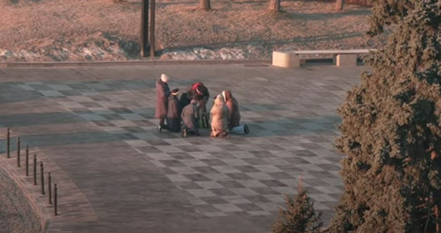 Όπως φαίνεται στο βίντεο μία οικογένεια επτά ατόμων σχημάτισε κύκλο και προσευχήθηκε στην κεντρική πλατεία της πόλης.