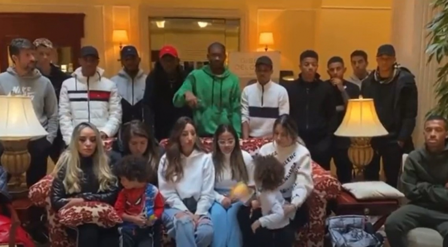 Ένα βίντεο που ανέβηκε στα social media έδειχνε παίκτες από τη Σαχτάρ Ντόνετσκ και την Ντιναμό Κιέβου, συγκεντρωμένους, μαζί με τις οικογένειές τους, σε ένα ξενοδοχείο στην ουκρανική πρωτεύουσα.