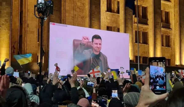 Το διάγγελμα του Βολοντίμιρ Ζελένσκι προβλήθηκε σε γιγαντοοθόνες που είχαν στηθεί σε πόλεις της Πολωνίας, της Γεωργίας, της Γερμανίας, της Γαλλίας και της Ουγγαρίας.