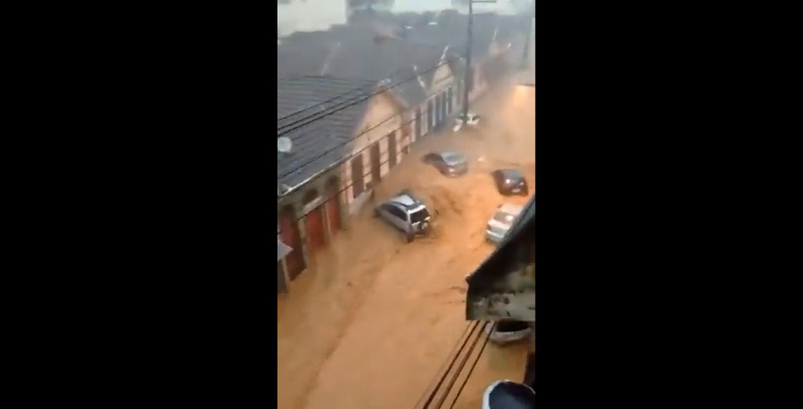 Βίντεο που ανέβηκαν στα social media δείχνουν δρόμους που έχουν μετατραπεί σε χείμαρρους, με το νερό να παρασέρνει τα πάντα στον διάβα του, όπως πριν από έναν μήνα, όταν σημειώθηκε η χειρότερη καταστροφή στην ιστορία της Πετρόπολις, της ορεινής τουριστικής πόλης περίπου 60 χιλιόμετρα από το Ρίο ντε Τζανέιρο.