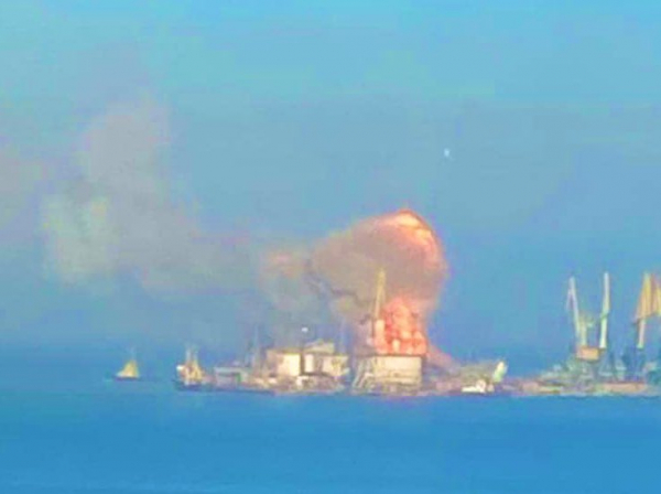 Ο Anton Gerashchenko, ανώτερος σύμβουλος του υπουργείου Εσωτερικών της Ουκρανίας, ανέβασε στον επίσημο λογαριασμό του στο Telegram φωτογραφία που φέρεται να δείχνει πυκνά σύννεφα καπνού να υψώνονται από το λιμάνι. «Μια αποθήκη με όπλα ρουκετών και πυροβολικού στο κατεχόμενο από τη Ρωσία Μπερντιάνσκ», έγραψε στη λεζάντα της φωτό.