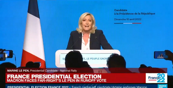 Συνεχίζοντας, κάλεσε τους ψηφοφόρους να στηρίξουν, «ώστε η Γαλλία να είναι δύναμη ειρήνης και να αποκαταστήσουμε την αυτοδιάθεση των Γάλλων. Θα διασφαλίσουμε τη Μετανάστευση και την ασφάλεια για όλους, εγγυημένοι των σεβασμό όλων. Έχουμε μία σειρά λύσεων που προτείνουμε με έναν προϋπολογισμό, με σαφή διατύπωση, που αποσκοπεί στο να θεραπεύσει τα βαθύτερα ρήγματα στη χώρα μας», πρόσθεσε.