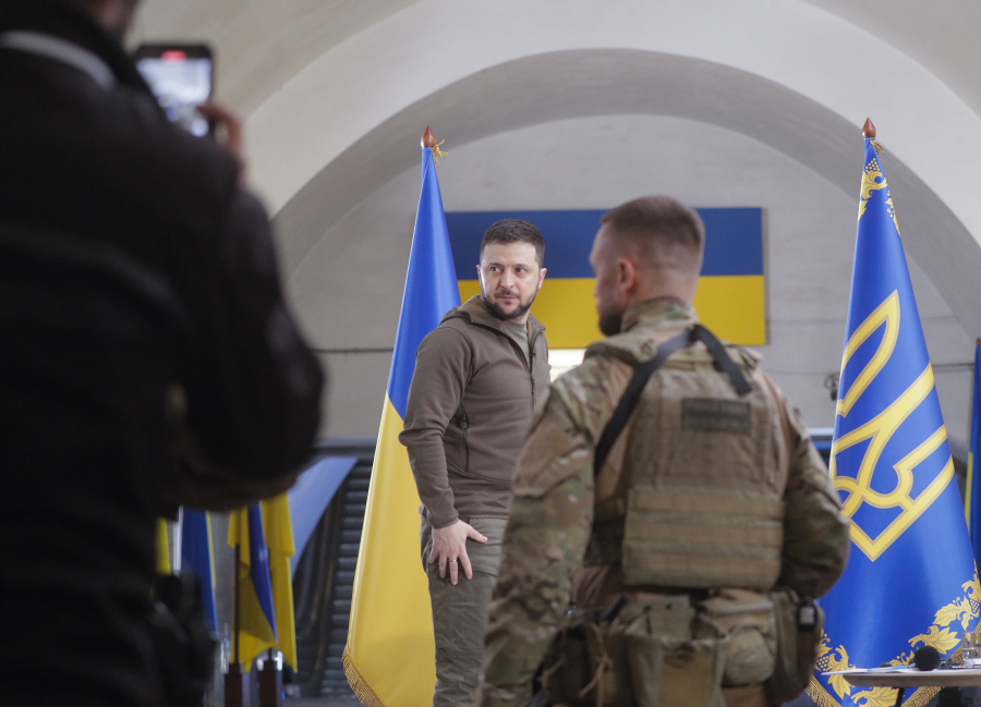 Μπροστά από τον καθεδρικό ναό της Αγίας Σοφίας στο Κίεβο, μια εκκλησία ηλικίας 1.000 ετών, ο Βολοντίμιρ Ζελένσκι επεσήμανε σε μαγνητοσκοπημένο μήνυμά του προς τον ουκρανικό λαό ότι η χώρα θα ξεπεράσει το σκοτάδι που έχει φέρει ο πόλεμος.