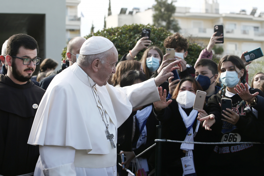 «Πώς πάει το γόνατό σου;» ακούγεται να ρωτάει τον ποντίφικα ένας από τους ιερείς. «Είναι πολύ ιδιότροπο» απαντάει ο Φραγκίσκος αναφερόμενος στο πρόβλημα που τον ανάγκασε να εμφανιστεί, για πρώτη φορά, με αναπηρικό αμαξίδιο στις αρχές Μαΐου και να αναβάλει ένα ταξίδι στον Λίβανο.