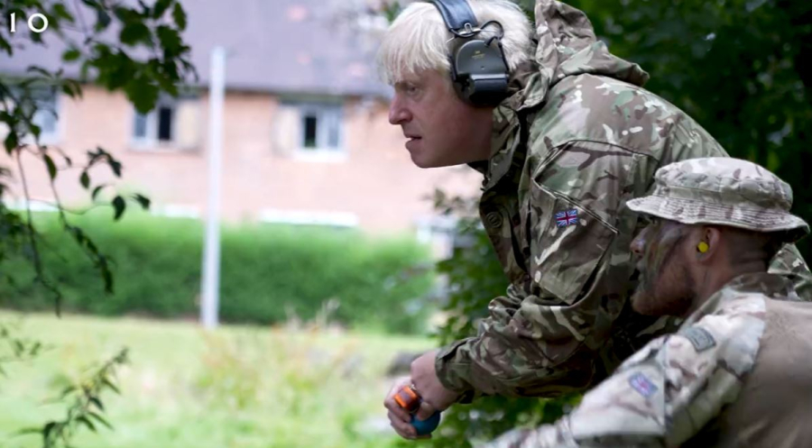 Στο βίντεο ο Τζόνσον εξηγεί ότι έχει συναντήσει μερικούς από τους 400 Ουκρανούς στρατιώτες που εκπαιδεύονται στη βάση.