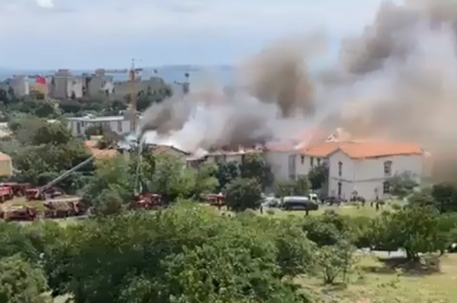 Τα τουρκικά μέσα μεταδίδουν ζωντανά τις εικόνες από το σημείο της φωτιάς, ενώ όπως δείχνουν και τα πλάνα το ιστορικό κτίριο έχει καεί σε μεγάλο βαθμό.