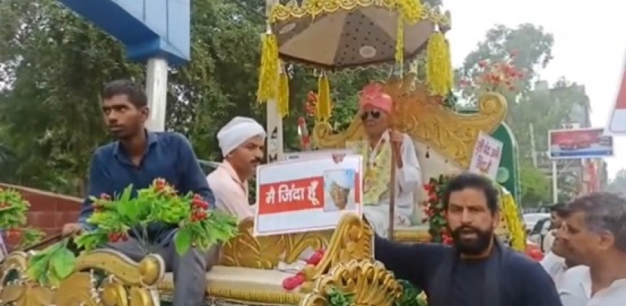 Ο 102χρονος εμφανίστηκε με άμαξα, γαμπριάτικο κοστούμι και μια μπάντα στην έδρα της τοπικής κυβέρνησης στην Ινδία.