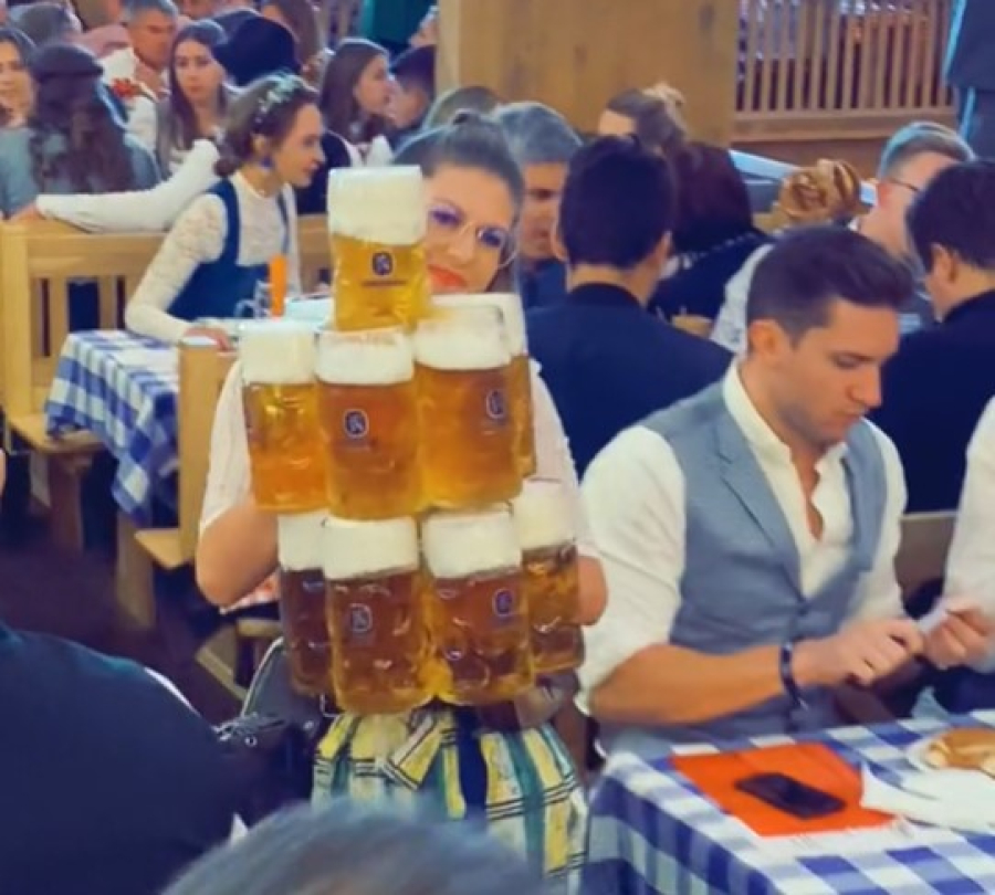 Δείτε την σερβιτόρα που κουβαλάει με την μέθοδο της πυραμίδας τουλάχιστον 13 μεγάλα ποτήρια γεμάτα με μπύρα: