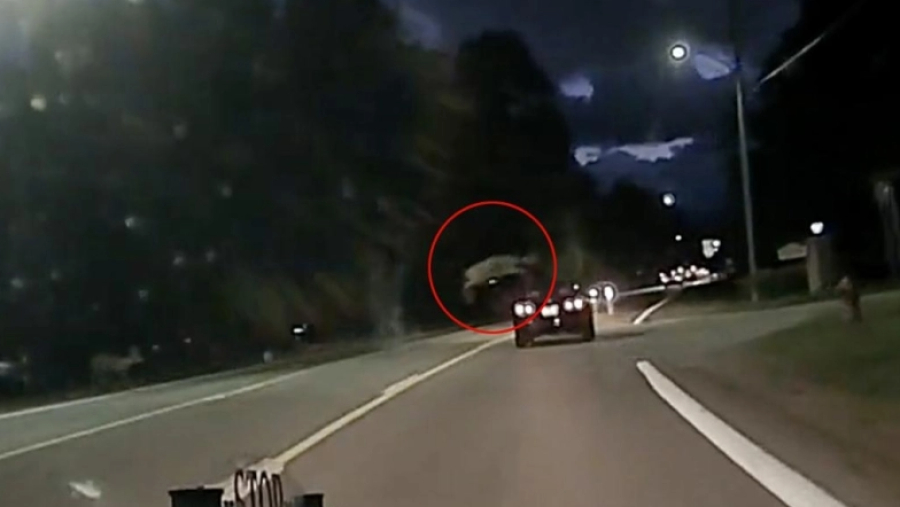 Με αφορμή το εξωπραγματικό άλμα του ΄ζωου, η τοπική αστυνομία εφιστά την προσοχή στους οδηγούς που περνούν από την περιοχή.