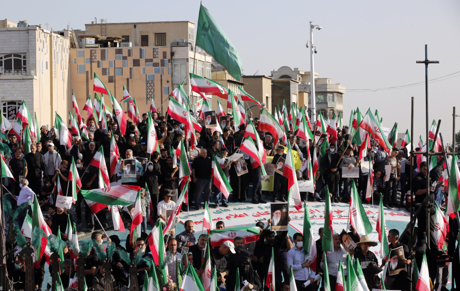 Το εξαγριωμένο πλήθος φώναζε «θάνατος στην ισλαμική δημοκρατία του Ιράν» και κρατούσε τη σημαία του Ιράν, πριν από την επανάσταση του 1979.