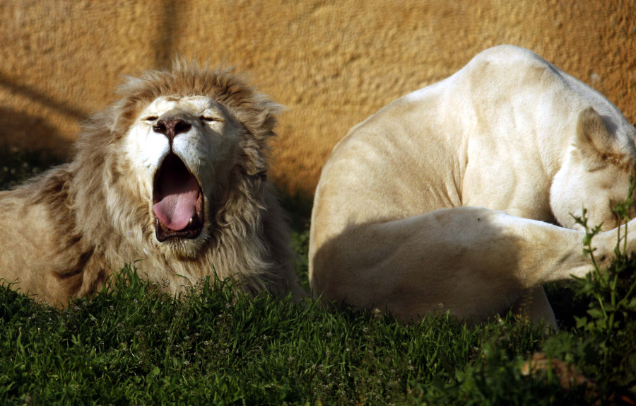 Στην φωτογραφία, απεικονίζεται ένα από τα λιοντάρια την ώρα που κατασπαράζει ένα κομμάτι από την νεκρή καμηλοπάρδαλη.