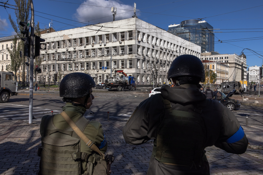 Μετά το πρώτο κύμα των ρωσικών πυραυλικών επιθέσεων ο Βολοντίμιρ Ζελένσκι βγήκε από το Προεδρικό Μέγαρο στον δρόμο και κατήγγειλε το Κρεμλίνο ότι θέλει να αφανίσει τους Ουκρανούς από προσώπου γης.