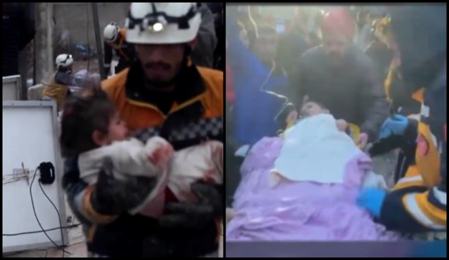 Rescue workers saved an injured child from the rubble of collapsed buildings after a major earthquake hit Syria, killing dozens and injuring hundreds https://t.co/d3s6tUGIrM pic.twitter.com/iky9r0smB7