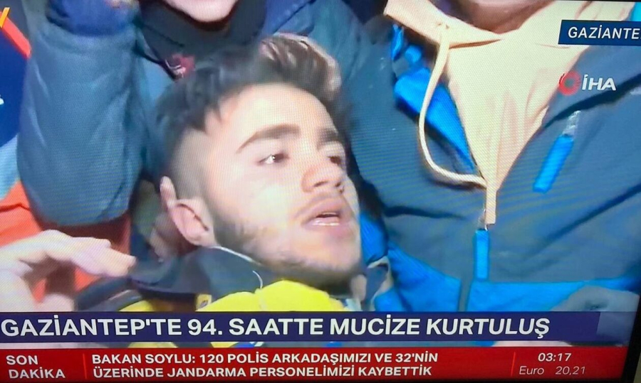 «Μπόρεσα να επιβιώσω με αυτόν τον τρόπο», είπε. «Έχω έναν γιο σαν κι εσένα», του είπε ένας υπάλληλος διάσωσης, που ονομάστηκε Yasemin, αφού τον αγκάλιασε θερμά. «Σου το ορκίζομαι, δεν έχω κοιμηθεί τέσσερις μέρες.