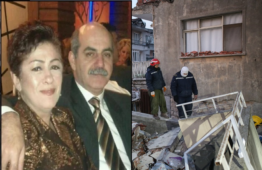 Ο Γ.Α. 65 ετών και η σύζυγός του Ν., 62 ετών, έμεναν στον 5ο όροφο της ισοπεδωμένης πολυκατοικίας. Μετά το σεισμό τα παιδιά κι οι στενοί συγγενείς τους άρχισαν να τηλεφωνούν και ο πρώτος που έσπευσε στην περιοχή, ήταν ο γαμπρός τους.