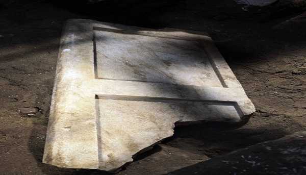 Σύμφωνα με σημερινή ανακοίνωση του υπουργείου Πολιτισμού, κατά την απομάκρυνση της αμμώδους επίχωσης εντοπίστηκε μαρμάρινο θυρόφυλλο, 2Χ0,90Χ0,15μ. και βάρους περίπου έναμιση τόνου, σε καλή κατάσταση διατήρησης, πεσμένο μέσα στο όρυγμα. Η απομάκρυνση του θυρόφυλλου από το σημείο, όπου βρέθηκε, επιχειρείται σήμερα.