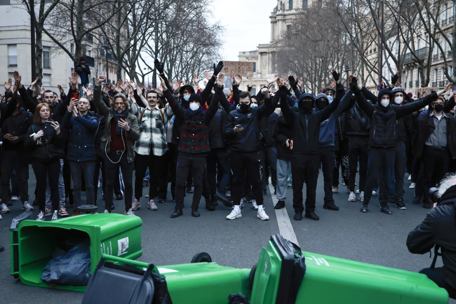 Στο Παρίσι όπου το CGT ανακοίνωσε τη συμμετοχή 800.000 διαδηλωτών και το υπουργείο 119.000, βίαια επεισόδια ξέσπασαν γρήγορα στην κεφαλή της πομπής: πέτρες, μπουκάλια και πυροτεχνήματα εκτοξεύθηκαν εναντίον της αστυνομίας, σε βιτρίνες και στέγαστρα σε στάσεις λεωφορείων, φωτιές μπήκαν σε κάδους απορριμμάτων.
