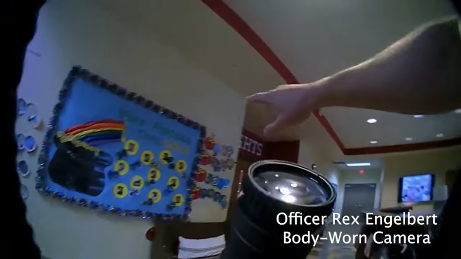Πλάνα από κάμερα σώματος δείχνουν τους αστυνομικούς να ψάχνουν, να εντοπίζουν και να ανταλλάσσουν πυροβολισμούς με την δράστιδα του μακελειού στο δημοτικό σχολείο
