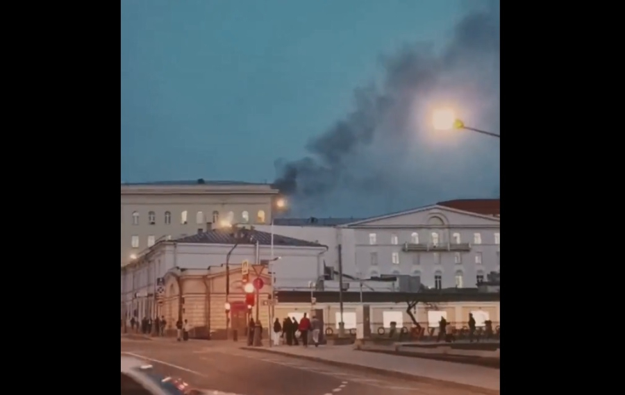 Σε βίντεο που δημοσιοποιήθηκε σε πλατφόρμες κοινωνικής δικτύωσης φαινόταν μια στήλη καπνού πάνω από το κτηριακό συγκρότημα του υπουργείου Άμυνας, που βρίσκεται κοντά στο Κρεμλίνο.