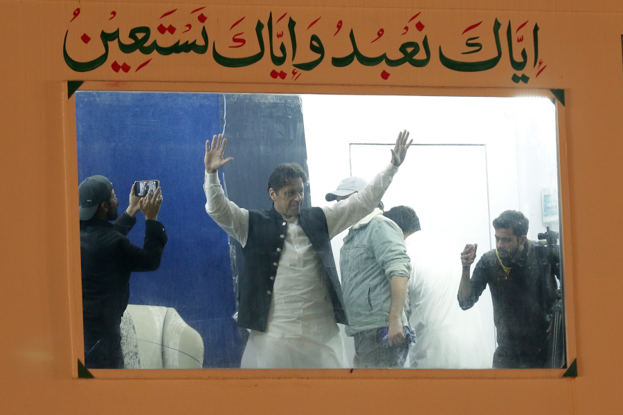 Πλάνα στα μέσα κοινωνικής δικτύωσης, όπως μετέδωσε το Sky News, δείχνουν δυνάμεις ασφαλείας να τραβούν τον Ιμράν Καν κατά μήκος του δρόμου και να οδηγείται σε ένα οπλισμένο όχημα.