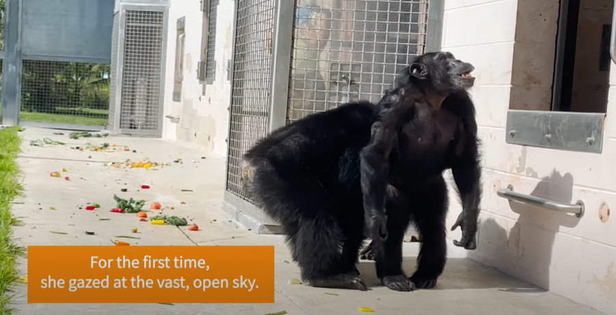 Η Vanilla, επέζησε από το διαβόητο Εργαστήριο Πειραματικής Ιατρικής και Χειρουργικής σε Πρωτεύοντα της Νέας Υόρκης (LEMSIP), είδε τον ανοιχτό ουρανό μετά την άφιξη στο καταφύγιο Save the Chimps στο Fort Pierce της Φλόριντα.