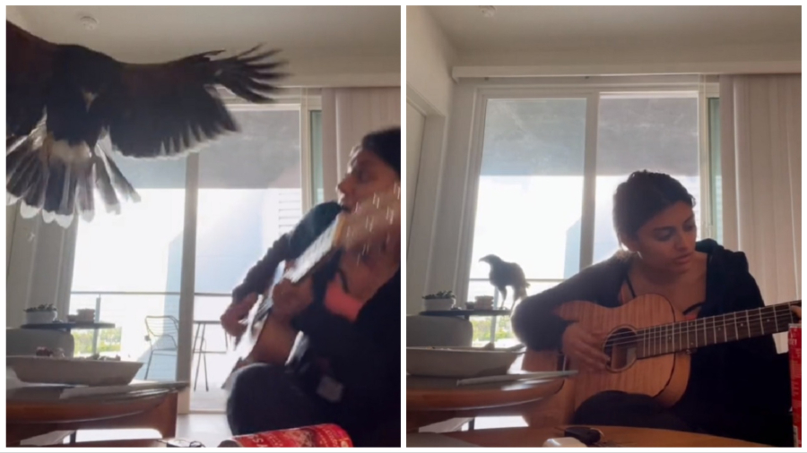 Μια κοπέλα στο TikTok, η Nikki Kundanmal, ανέβασε ένα βίντεο στο TikTok όπου παίζει μουσική με την κιθάρα της αλλά ένας απρόσμενος επισκέπτης θέλει να της κάνει -μάλλον- παρέα.
