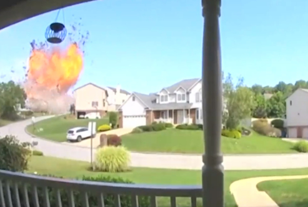 Τα συντρίμμια της οικίας διασκορπίζονται σε μεγάλη απόσταση και προκαλούν μεγάλες ζημιές σε άλλα 12 σπίτια.