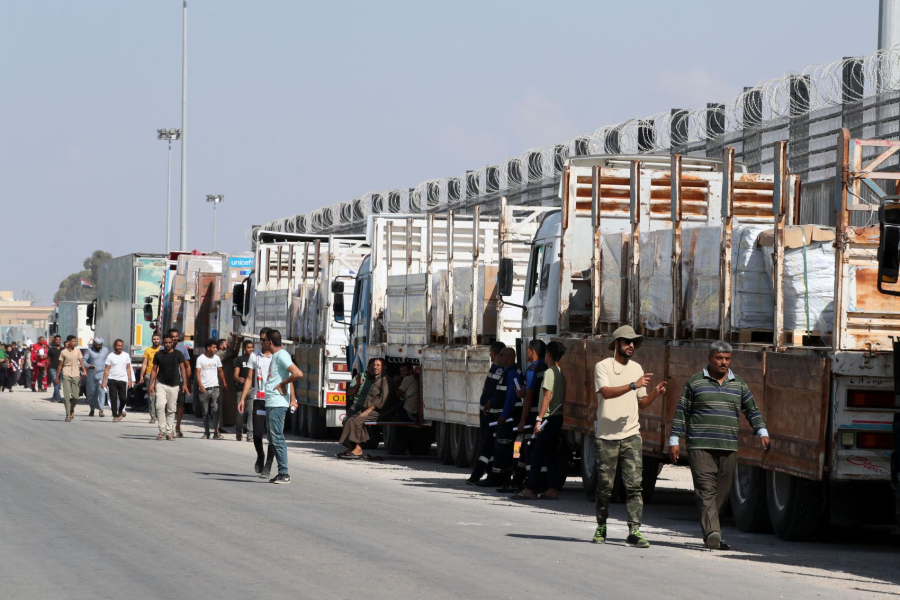 Η κρατική τηλεόραση της Αιγύπτου έδειξε εικόνες από πολλά φορτηγά να περνούν το συνοριακό πέρασμα, κατά την 15η ημέρα του πολέμου μεταξύ του Ισραήλ και της Χαμάς και μετά την επιβολή πλήρους πολιορκίας στη Γάζα από το Ισραήλ εξαιτίας της οποίας οι 2,4 εκατομμύρια κάτοικοι του θύλακα -οι μισοί από τους οποίους παιδιά και έφηβοι- βρίσκονται χωρίς νερό, ηλεκτρικό ρεύμα και καύσιμα.