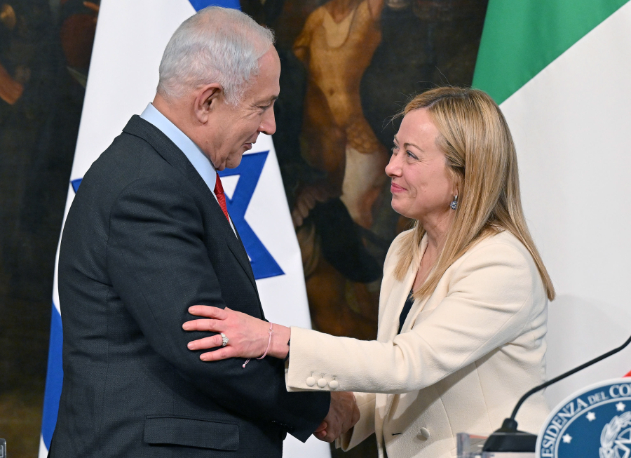 Ο πρωθυπουργός Μπενιαμίν Νετανιάχου συναντάται με την Ιταλίδα ομόλογό του Τζόρτζια Μελόνι στην έδρα του υπουργείου Άμυνας στο Τελ Αβίβ, σύμφωνα με το γραφείο του.