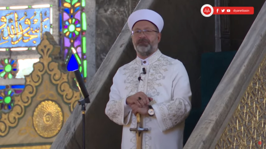 Ο Αλί Ερμπάς, πρόεδρος της διεύθυνσης θρησκευτικών υποθέσεων της Τουρκίας πριν από λίγες ημέρες ανέβηκε στον άμβωνα της Αγιάς Σοφιάς και μίλησε για τη Γαζα κρατώντας στα χέρια του ένα σπαθί. Τα τουρκικά ΜΜΕ αποκρυπτογράφησαν την κίνηση του Αλί Ερμπάς και είπαν ότι πρόκειται για «σύμβολο εκφοβισμού του εχθρού και εμπιστοσύνης σε φίλους» με αποδέκτη το Ισραήλ και σαφής στήριξης της Χαμάς.