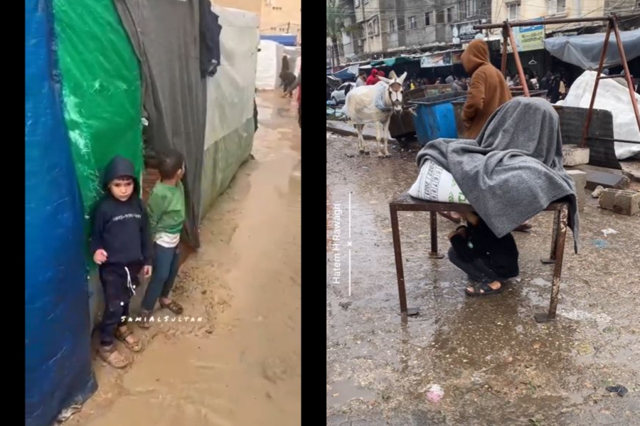 Διεθνή μέσα μεταδίδουν από το πρωί της Τετάρτης εικόνες από το κλιμακούμενο δράμα των αμάχων στη Γάζα που πλέον αναγκάζονται να αντιμετωπίσουν και τις κακές καιρικές συνθήκες - δυνατές βροχές και κρύο - κι αυτό ενώ έχουν μείνει άστεγοι και ζουν σε πρόχειρα καταλύματα και σκηνές χωρίς χειμωνιάτικα ρούχα.