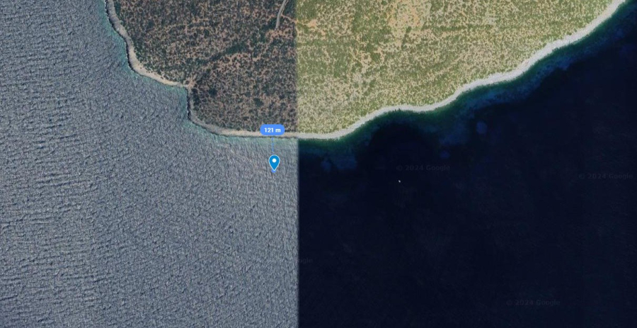 Σημειώνεται ότι το σημείο είναι ξεκαθαρα και εντός Ελληνικών χωρικών υδάτων καθώς ειναι μολις 121 μέτρα απο την ακτή του Φαρμακονησίου.
