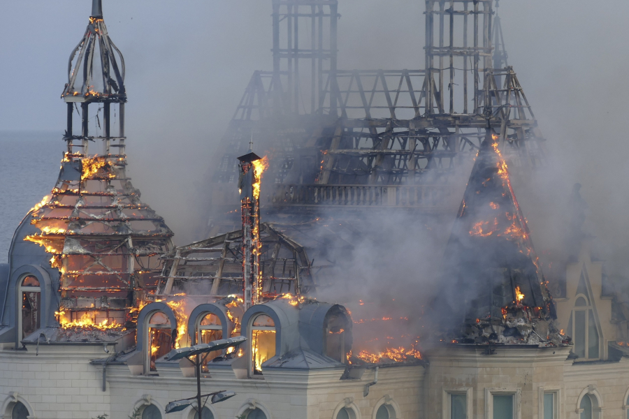 Φωτογραφίες και βίντεο που αναρτήθηκαν στα μέσα κοινωνικής δικτύωσης δείχνουν τη φωτιά που ξέσπασε μετά την πυραυλική επίθεση, στην έπαυλη που ανήκει στον πρώην βουλευτή Σερχίι Κιβάλοφ. Νωρίτερα η ουκρανική τηλεόραση μετέδωσε ότι ο Κιβάλοφ τραυματίστηκε στην επίθεση.