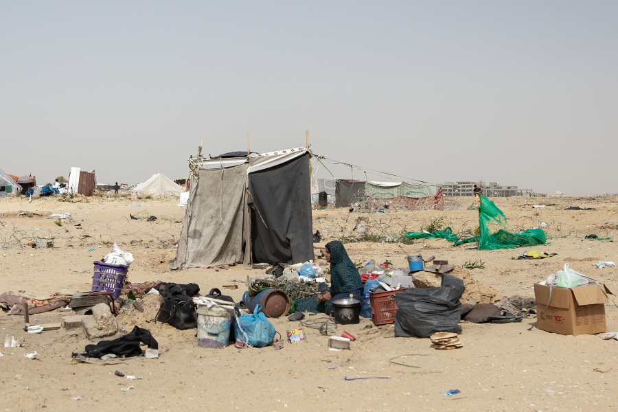 Στη Γάζα, κοντά στην πόλη Χαν Γιουνίς, οι εκτοπισμένοι έχουν δημιουργήσει καταυλισμό από σκηνές, οι οποίες καλύπτουν απόσταση 10 χιλιομέτρων.