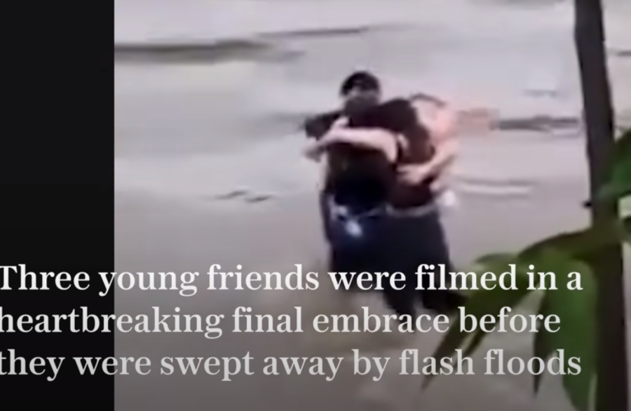 Ένας πυροσβέστης τους είπε από μια κοντινή γέφυρα να μείνουν ενωμένοι και οι 3 τους αγκαλιάστηκαν μεταξύ τους, για να κρατηθούν απέναντι στα ορμητικά νερά.