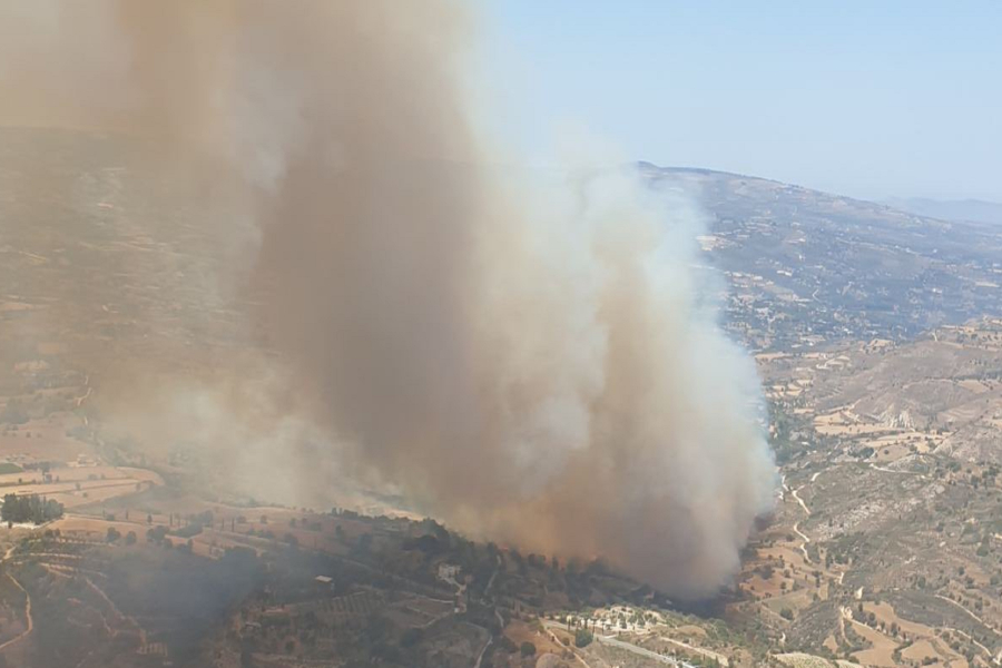 Ανεξέλεγκτη μαίνεται μεγάλη φωτιά στην Πάφο, η οποία ξέσπασε ανατολικά της κοινότητας Γιόλου.