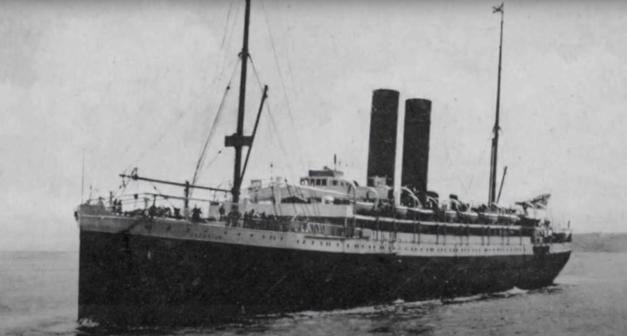 Στις 17:44, μια έκρηξη συγκλόνισε το πλοίο. Το γερμανικό υποβρύχιο UC-74 είχε εντοπίσει το υπερωκεάνιο και εξαπέλυσε επίθεση εναντίον του. Μια τορπίλη το έπληξε στη δεξιά πλευρά του, μεταξύ γέφυρας και πρωραίου ιστού.