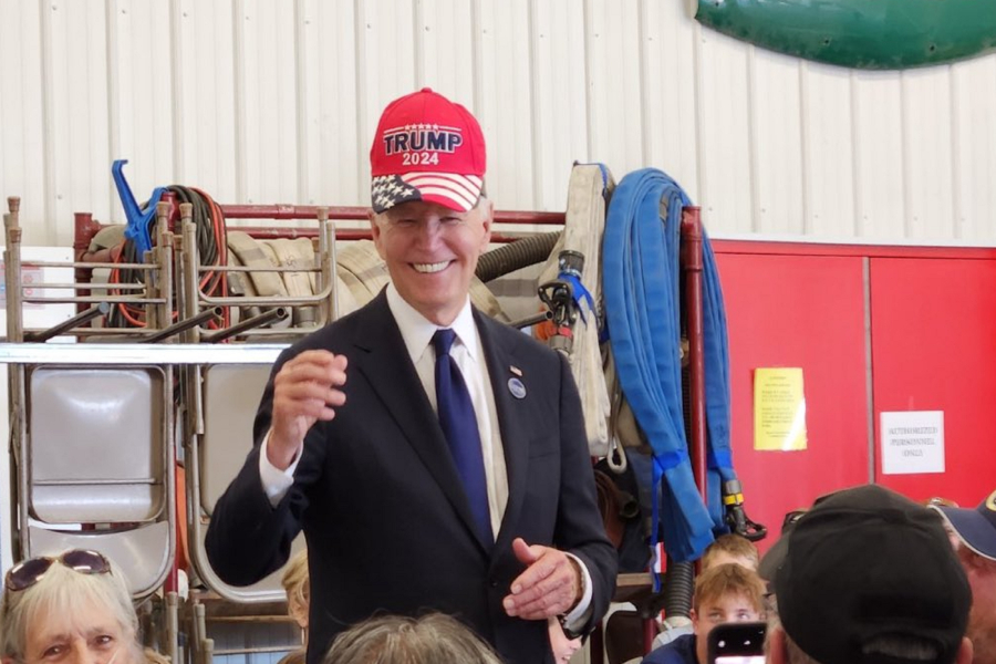 Στη συνέχεια, έδωσε ένα καπέλο σε υποστηρικτή του Τραμπ, ο οποίος είπε ότι στο ίδιο πνεύμα ο πρόεδρος θα έπρεπε να βάλει το δικό του καπέλο υπέρ του Ρεπουμπλικάνου. «Το φόρεσε για λίγο», κατέληξε ο εκπρόσωπος του Λευκού Οίκου.