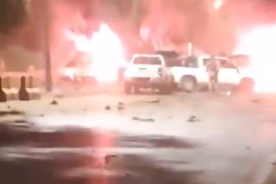 Σε βίντεο που έχουν κυκλοφορήσει στα social media, φαίνονται αυτοκίνητα να φλέγονται ενώ ένα τεράστιο σύννεφο καπνού υψώνεται στον ουρανό.